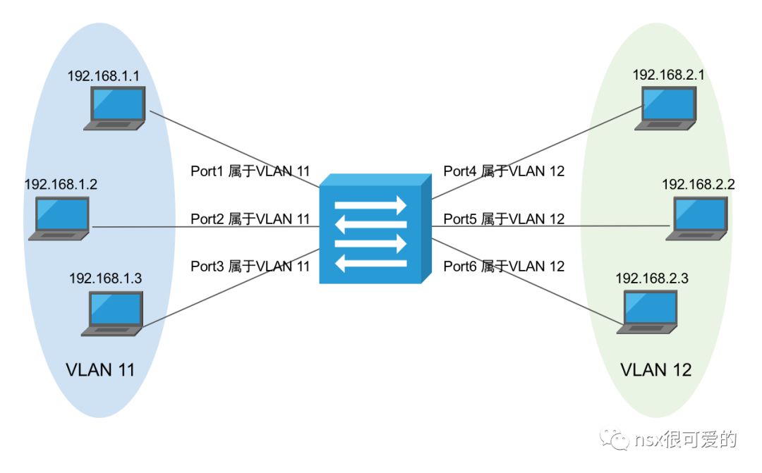 - VLAN 隔离:在一个交换机上,使用 VLAN 将不同网段的设备隔离起来。VLAN 需要在每个交换机上都配置,然后需要将接口关联给某 VLAN ,在未来数据包转发的时候,此 VLAN 产生的广播包只会在此 VLAN 里传播。